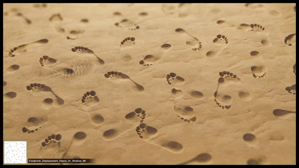 - 9 Seamless Displacement Maps of Footprints.